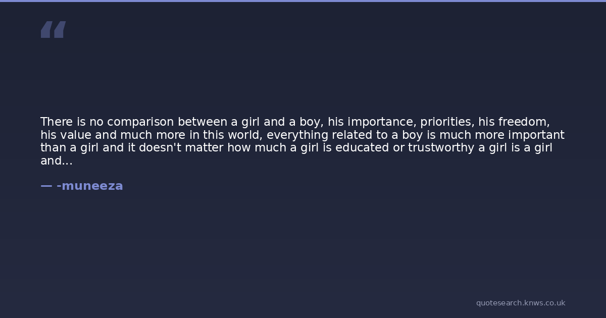 There is no comparison between a girl and a boy, his importance, priorities, his freedom, his value and much more in this world, everything related to a boy is much more important than a girl and it doesn't matter how much a girl is educated or trustworthy a girl is a girl and a boy is a boy, I wish that at least every man should have a little trust on a girl and give her freedom to choose her own lifestyle... I believe in it that if you show your support for her she will surely never make your head down.