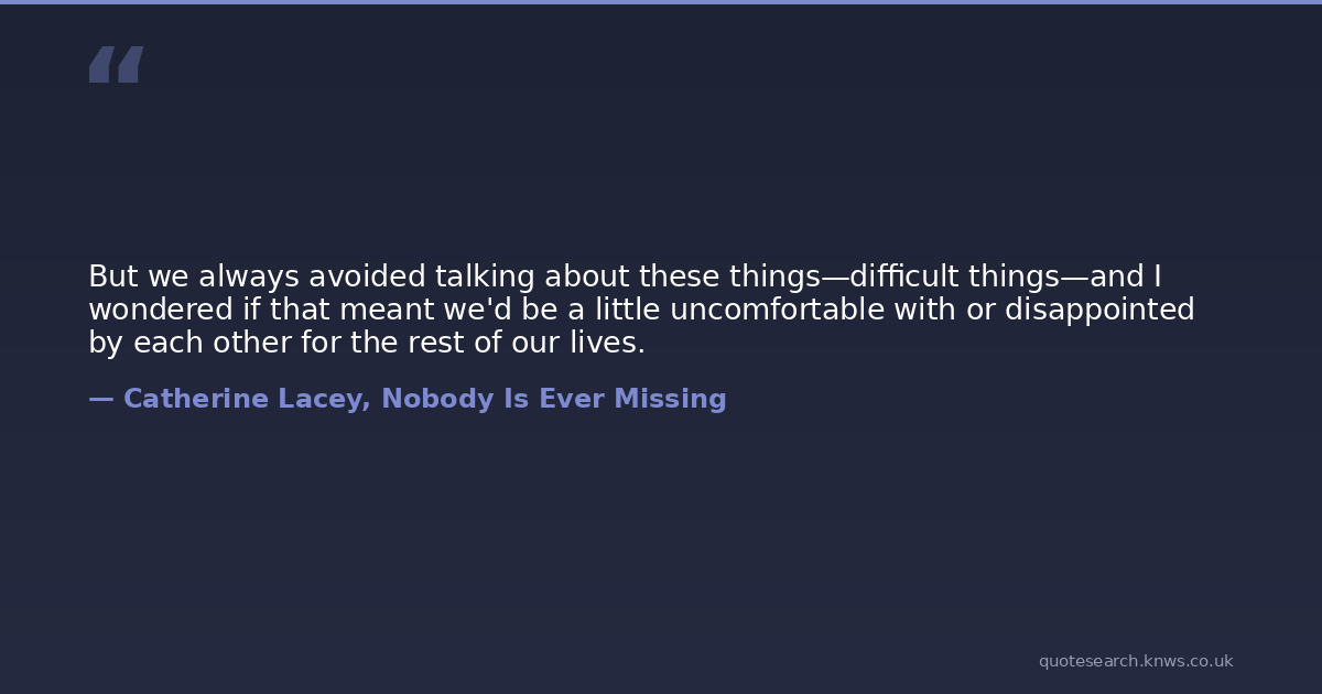But we always avoided talking about these things—difficult things—and I wondered if that meant we'd be a little uncomfortable with or disappointed by each other for the rest of our lives.