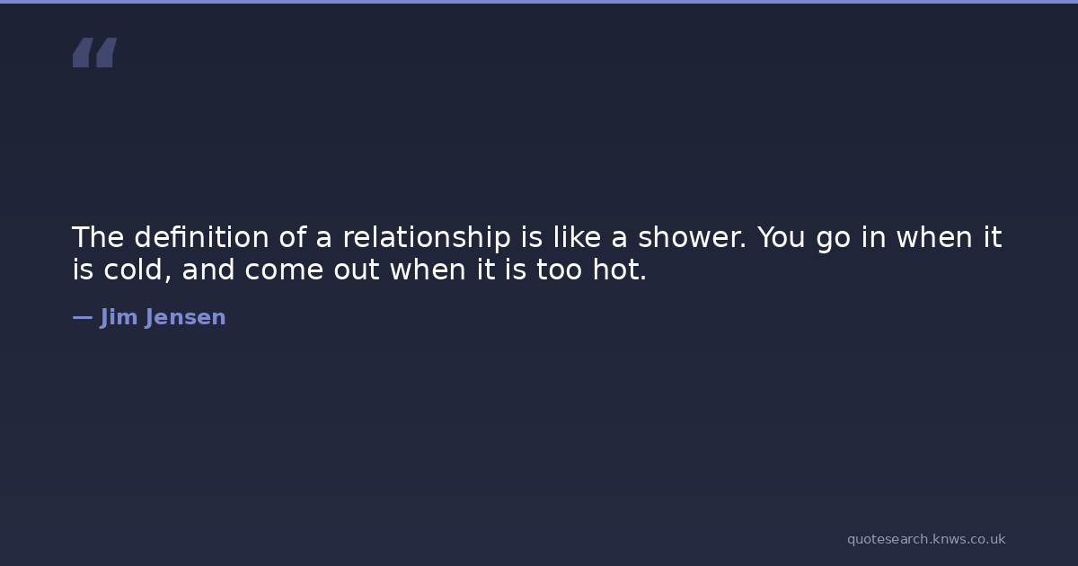 The definition of a relationship is like a shower. You go in when it is cold, and come out when it is too hot.