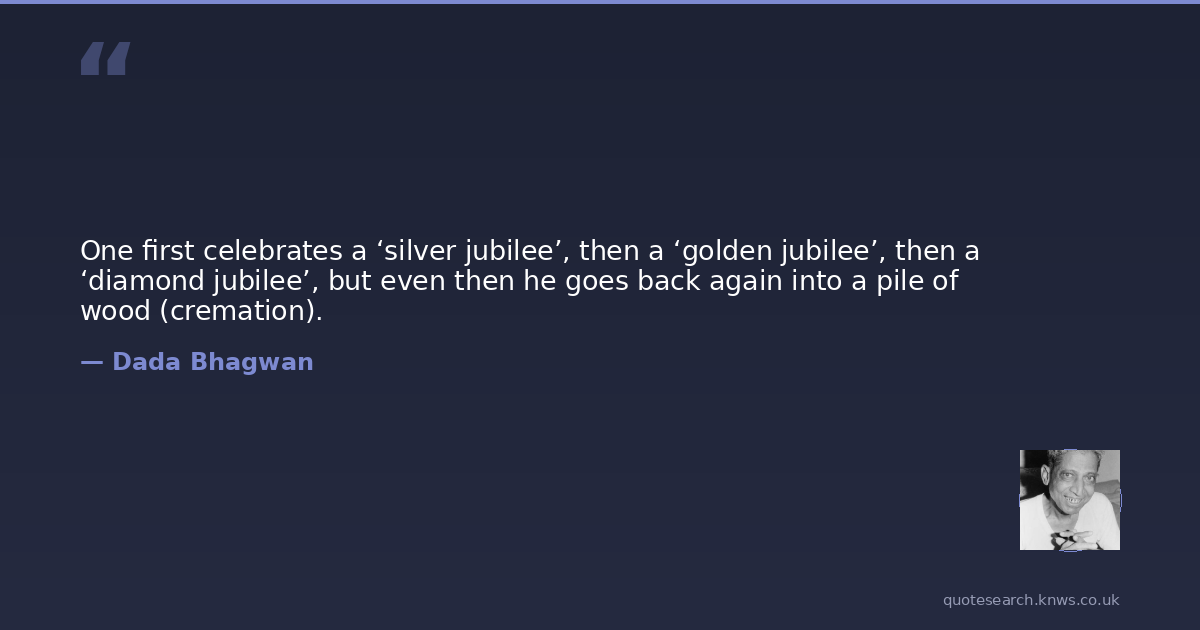 One first celebrates a ‘silver jubilee’, then a ‘golden jubilee’, then a ‘diamond jubilee’, but even then he goes back again into a pile of wood (cremation).