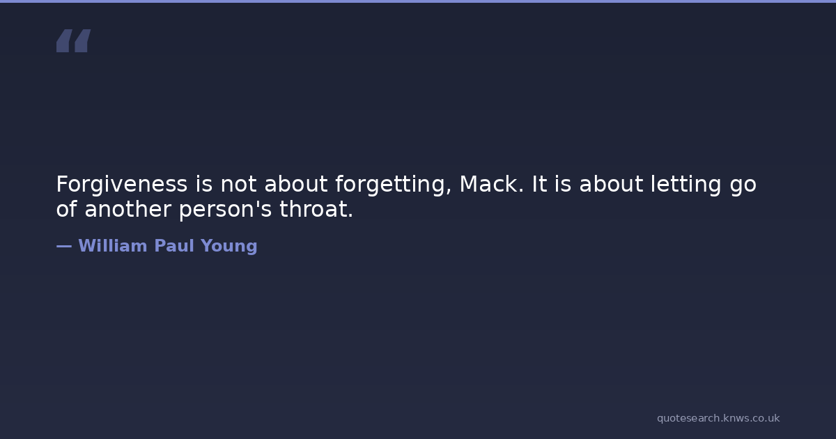 Forgiveness is not about forgetting, Mack. It is about letting go of another person's throat.