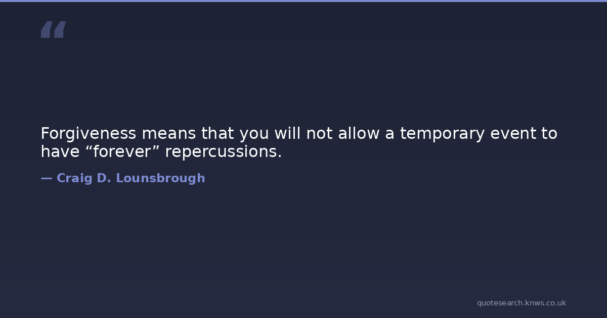 Forgiveness means that you will not allow a temporary event to have “forever” repercussions.