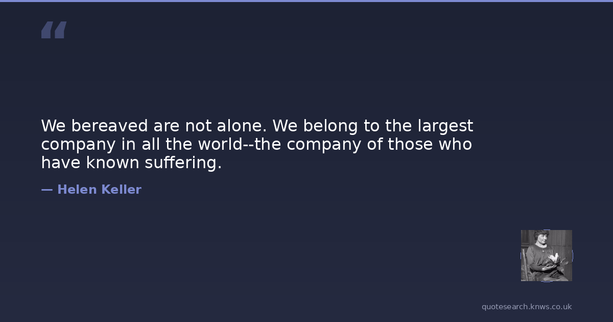 We bereaved are not alone. We belong to the largest company in all the world--the company of those who have known suffering.