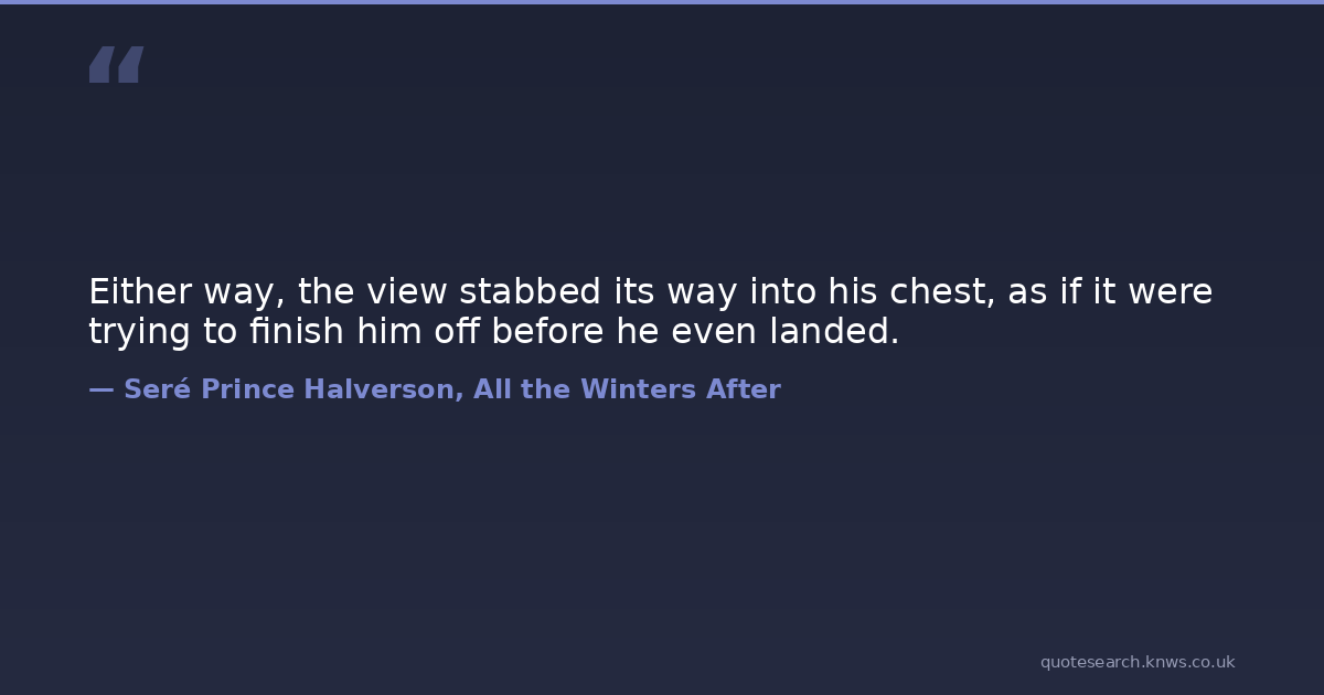 Either way, the view stabbed its way into his chest, as if it were trying to finish him off before he even landed.