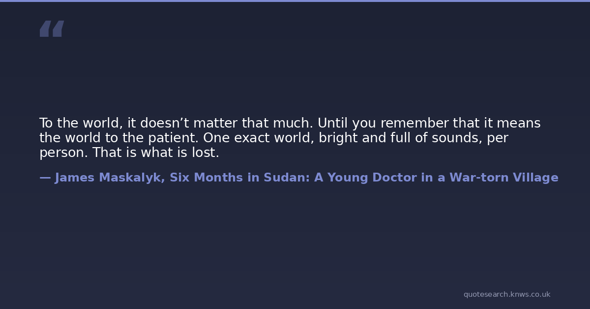 To the world, it doesn’t matter that much. Until you remember that it means the world to the patient. One exact world, bright and full of sounds, per person. That is what is lost.