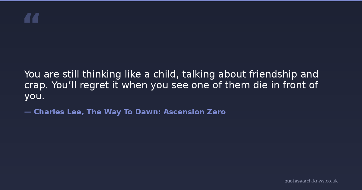 You are still thinking like a child, talking about friendship and crap. You’ll regret it when you see one of them die in front of you.