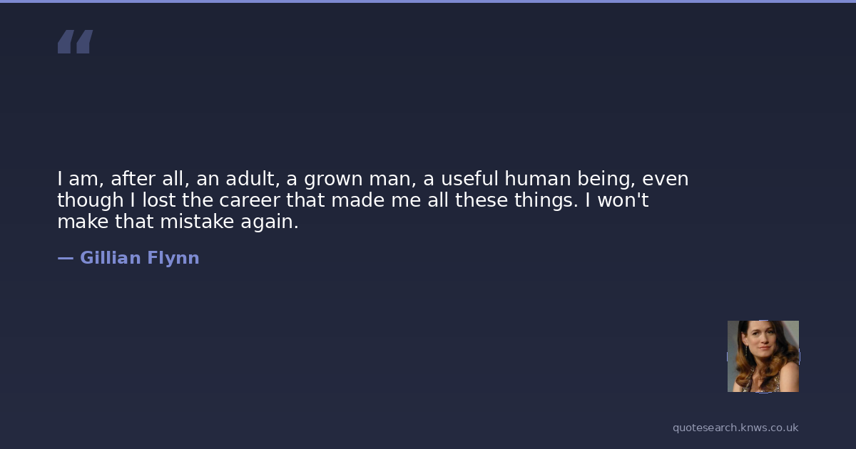 I am, after all, an adult, a grown man, a useful human being, even though I lost the career that made me all these things. I won't make that mistake again.