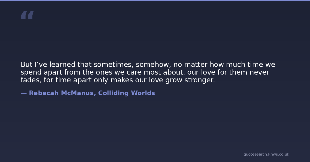But I’ve learned that sometimes, somehow, no matter how much time we spend apart from the ones we care most about, our love for them never fades, for time apart only makes our love grow stronger.