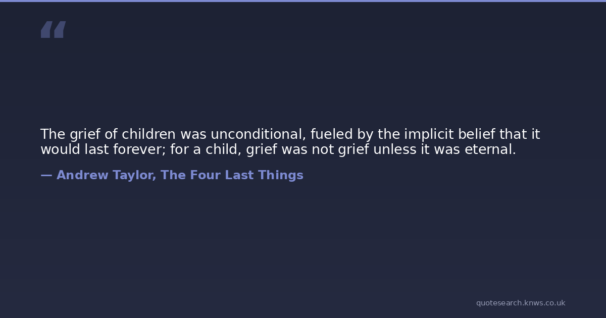The grief of children was unconditional, fueled by the implicit belief that it would last forever; for a child, grief was not grief unless it was eternal.