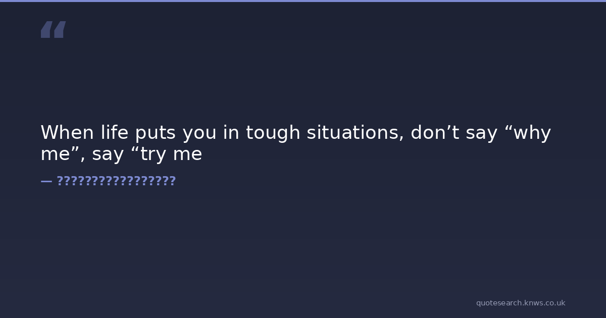 When life puts you in tough situations, don’t say “why me”, say “try me inspiring strong Download Image Share on X Share on Facebook Copy Link