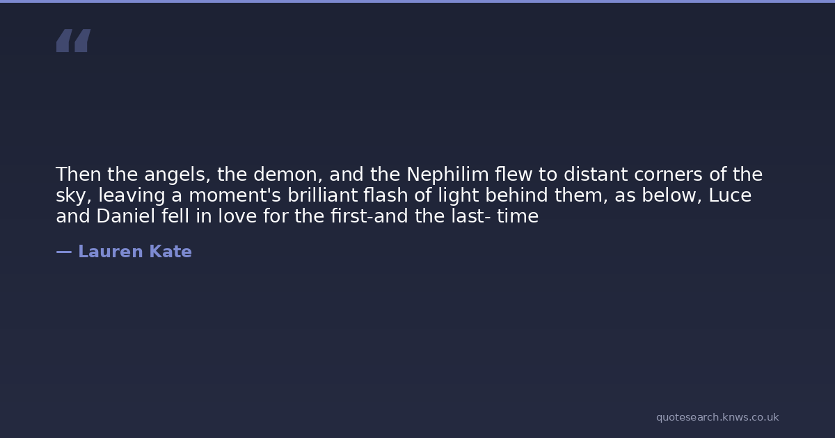 Then the angels, the demon, and the Nephilim flew to distant corners of the sky, leaving a moment's brilliant flash of light behind them, as below, Luce and Daniel fell in love for the first-and the last- time