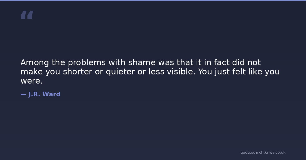 Among the problems with shame was that it in fact did not make you shorter or quieter or less visible. You just felt like you were.