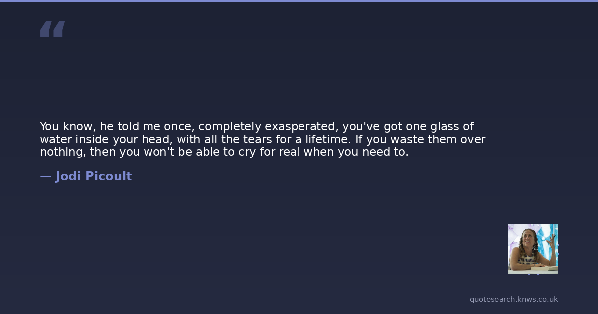 You know, he told me once, completely exasperated, you've got one glass of water inside your head, with all the tears for a lifetime. If you waste them over nothing, then you won't be able to cry for real when you need to.