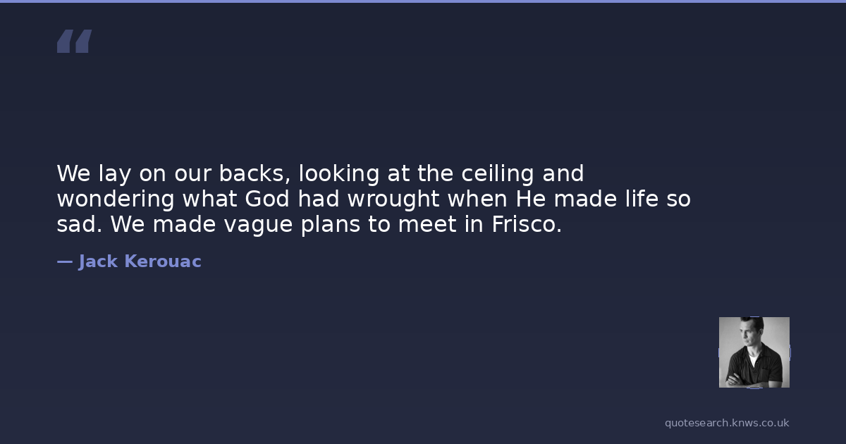 We lay on our backs, looking at the ceiling and wondering what God had wrought when He made life so sad. We made vague plans to meet in Frisco.