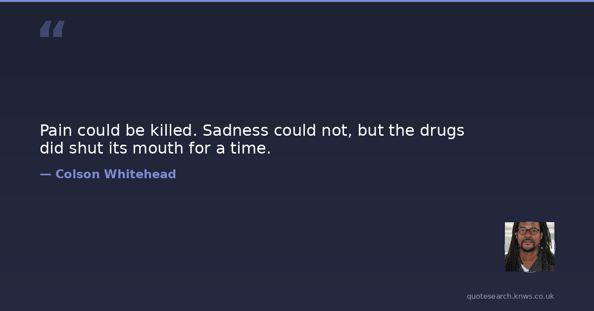 Pain could be killed. Sadness could not, but the drugs did shut its mouth for a time.