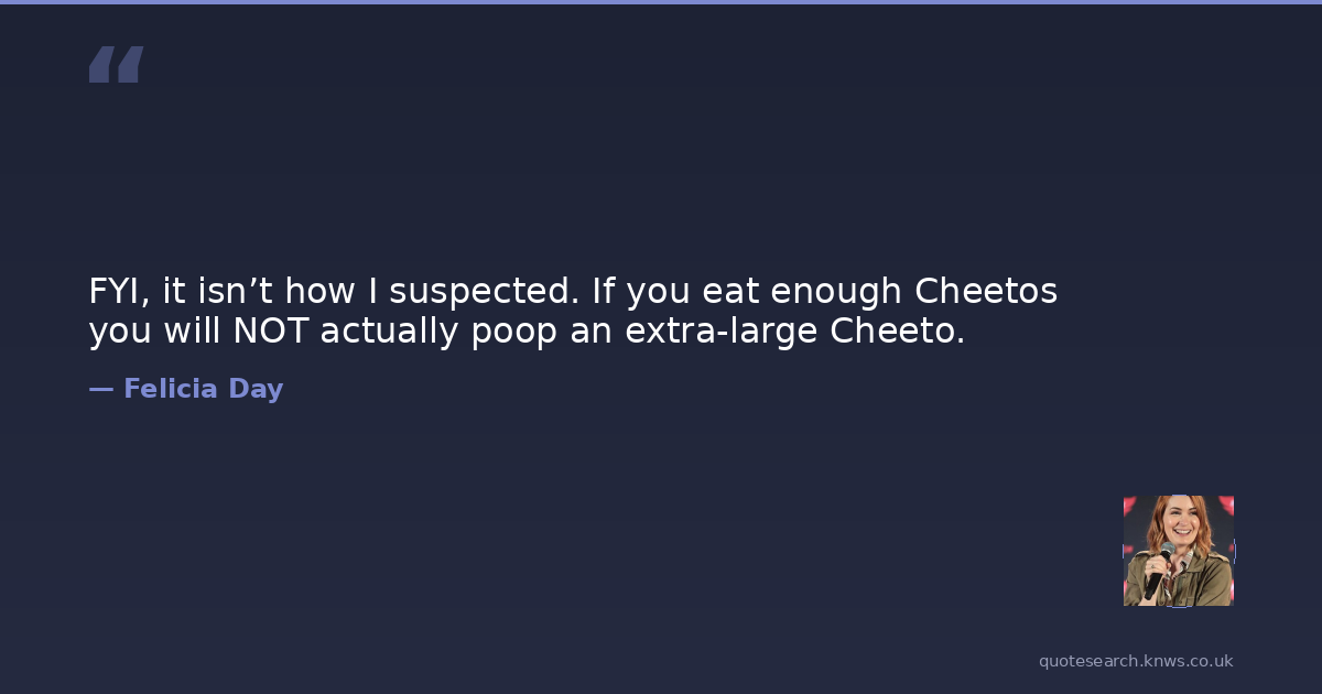 FYI, it isn’t how I suspected. If you eat enough Cheetos you will NOT actually poop an extra-large Cheeto.
