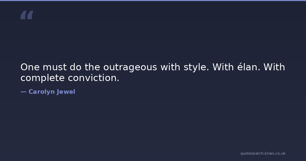 One must do the outrageous with style. With élan. With complete conviction. inspirational life-philosophy outrageous Download Image Share on X Share on Facebook Copy Link