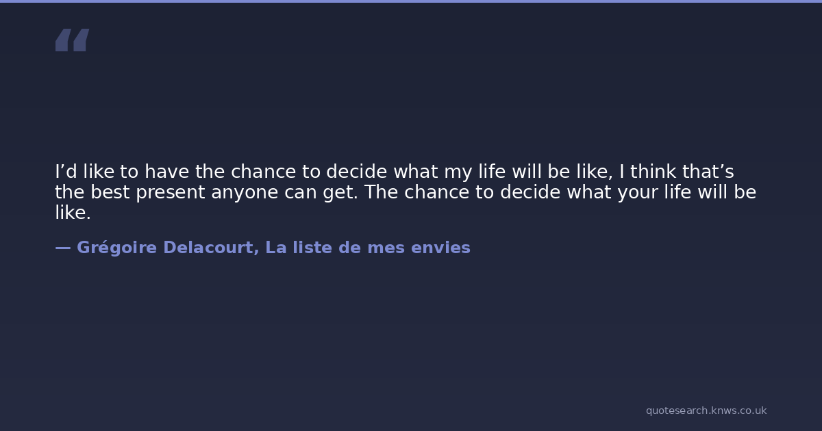 I’d like to have the chance to decide what my life will be like, I think that’s the best present anyone can get. The chance to decide what your life will be like.