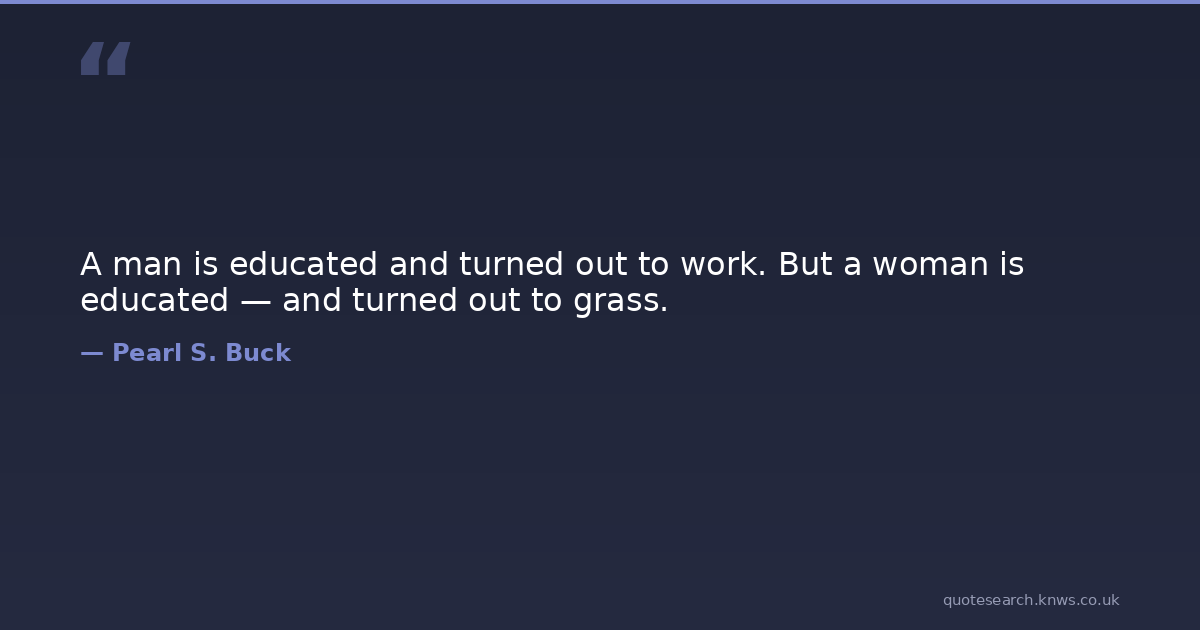 A man is educated and turned out to work. But a woman is educated — and turned out to grass.