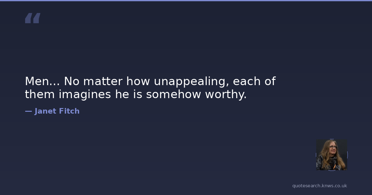 Men... No matter how unappealing, each of them imagines he is somehow worthy.