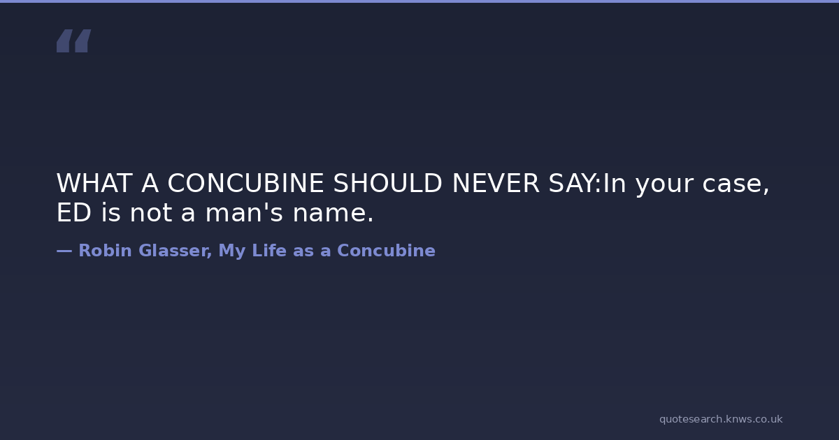 WHAT A CONCUBINE SHOULD NEVER SAY:In your case, ED is not a man's name. concubine funny men Download Image Share on X Share on Facebook Copy Link