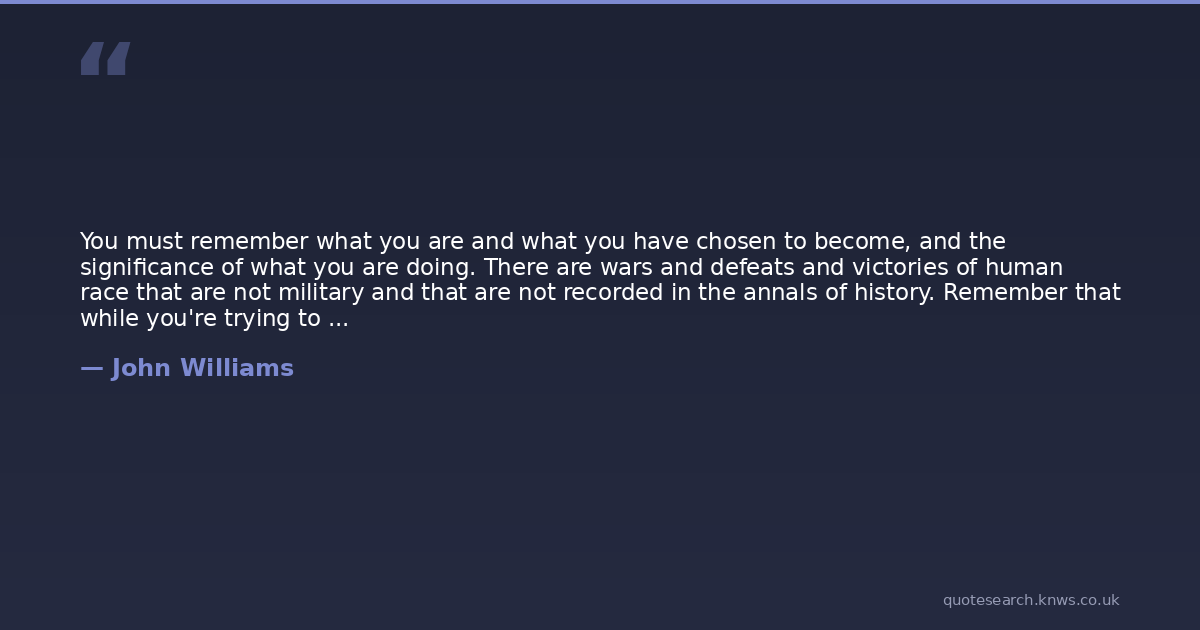 You must remember what you are and what you have chosen to become, and the significance of what you are doing. There are wars and defeats and victories of human race that are not military and that are not recorded in the annals of history. Remember that while you're trying to decide what do. - Archer Sloane from the book Stoner.