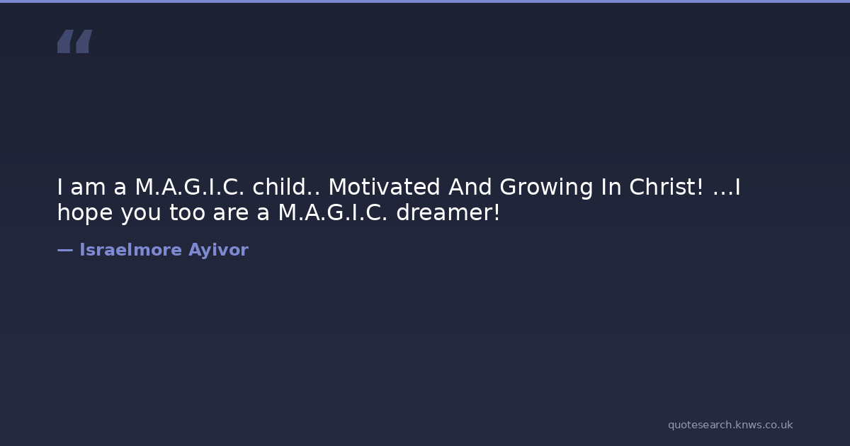 I am a M.A.G.I.C. child.. Motivated And Growing In Christ! …I hope you too are a M.A.G.I.C. dreamer!