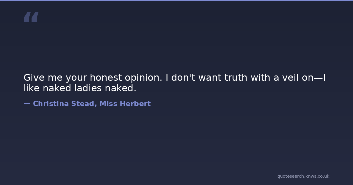 Give me your honest opinion. I don't want truth with a veil on—I like naked ladies naked. inspirational-life Download Image Share on X Share on Facebook Copy Link