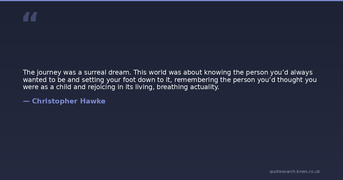 The journey was a surreal dream. This world was about knowing the person you’d always wanted to be and setting your foot down to it, remembering the person you’d thought you were as a child and rejoicing in its living, breathing actuality.