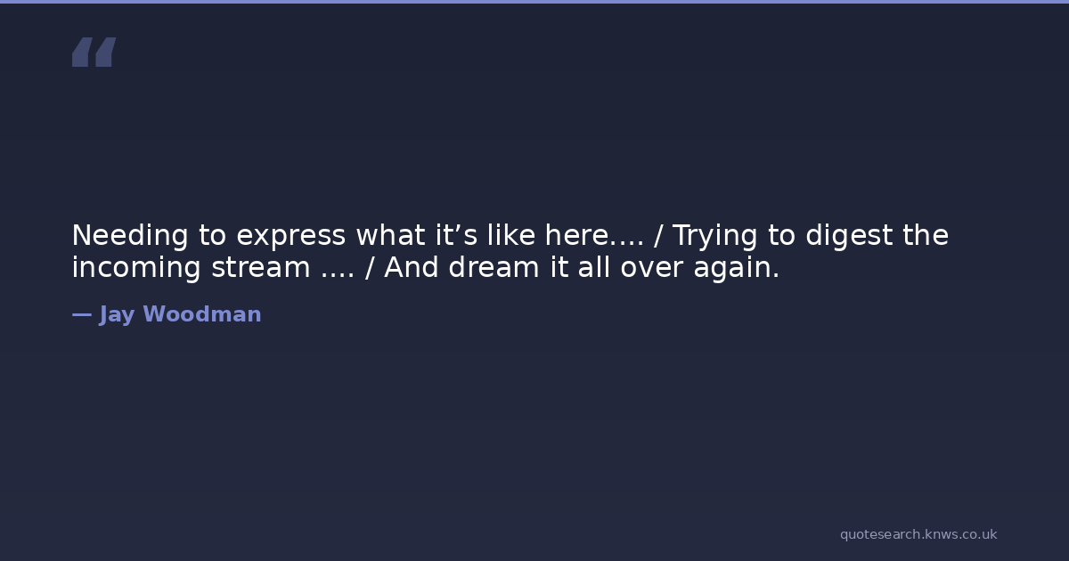 Needing to express what it’s like here.... / Trying to digest the incoming stream .... / And dream it all over again.
