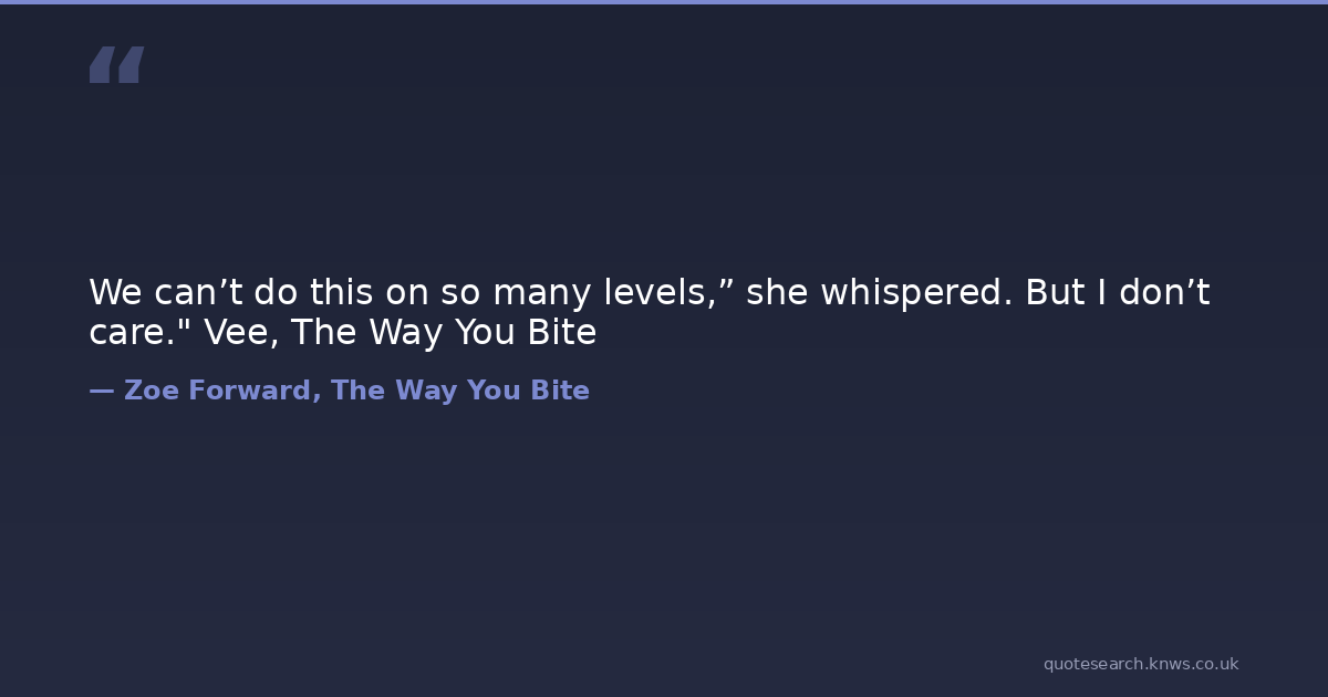 We can’t do this on so many levels,” she whispered. But I don’t care." Vee, The Way You Bite forbidden-love paranormal-romance romance sexy-humor Download Image Share on X Share on Facebook Copy Link