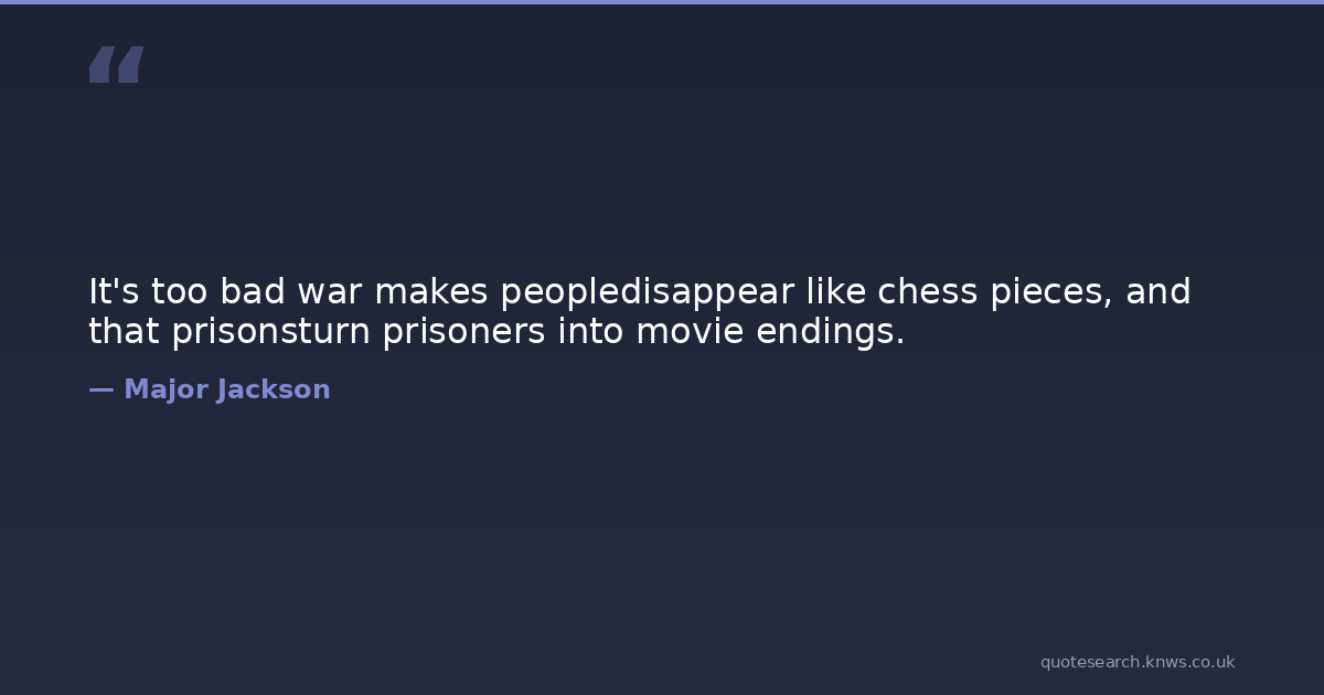 It's too bad war makes peopledisappear like chess pieces, and that prisonsturn prisoners into movie endings.
