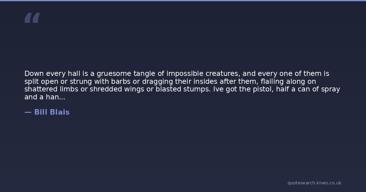 Down every hall is a gruesome tangle of impossible creatures, and every one of them is split open or strung with barbs or dragging their insides after them, flailing along on shattered limbs or shredded wings or blasted stumps. Ive got the pistol, half a can of spray and a handful of useless shotgun slugs.Im dead.