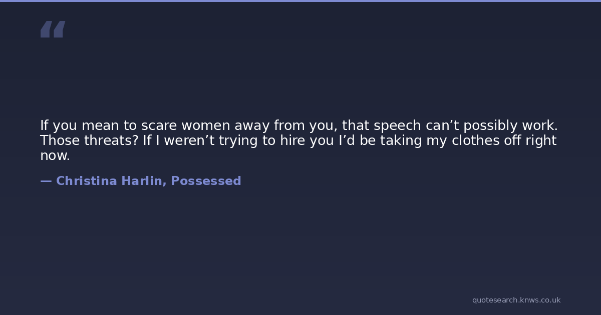 If you mean to scare women away from you, that speech can’t possibly work. Those threats? If I weren’t trying to hire you I’d be taking my clothes off right now.