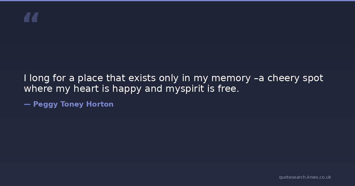 I long for a place that exists only in my memory –a cheery spot where my heart is happy and myspirit is free.