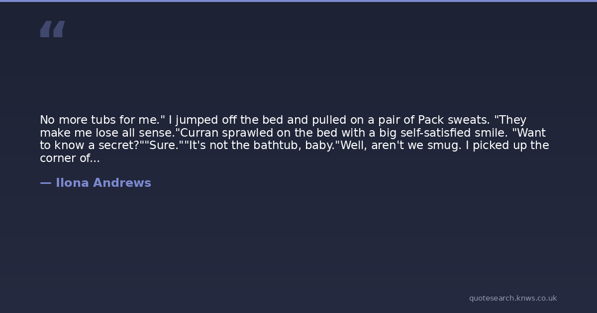 No more tubs for me." I jumped off the bed and pulled on a pair of Pack sweats. "They make me lose all sense."Curran sprawled on the bed with a big self-satisfied smile. "Want to know a secret?""Sure.""It's not the bathtub, baby."Well, aren't we smug. I picked up the corner of the lowest mattress and made a show of looking under it."What are you looking for?""A pea Your Majesty.""What?""You heard me."I jumped back as he lunged and his fingers missed me by an inch."Getting slow in your old age.""I thought you liked it slow."A flashback to last night mugged me and my mind executed a full stop.He laughed. "Ran out of snappy comebacks?""Hush. I'm trying to think of one.