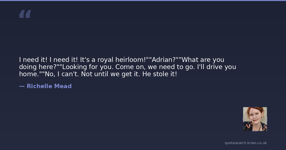 I need it! I need it! It's a royal heirloom!""Adrian?""What are you doing here?""Looking for you. Come on, we need to go. I'll drive you home.""No, I can't. Not until we get it. He stole it!