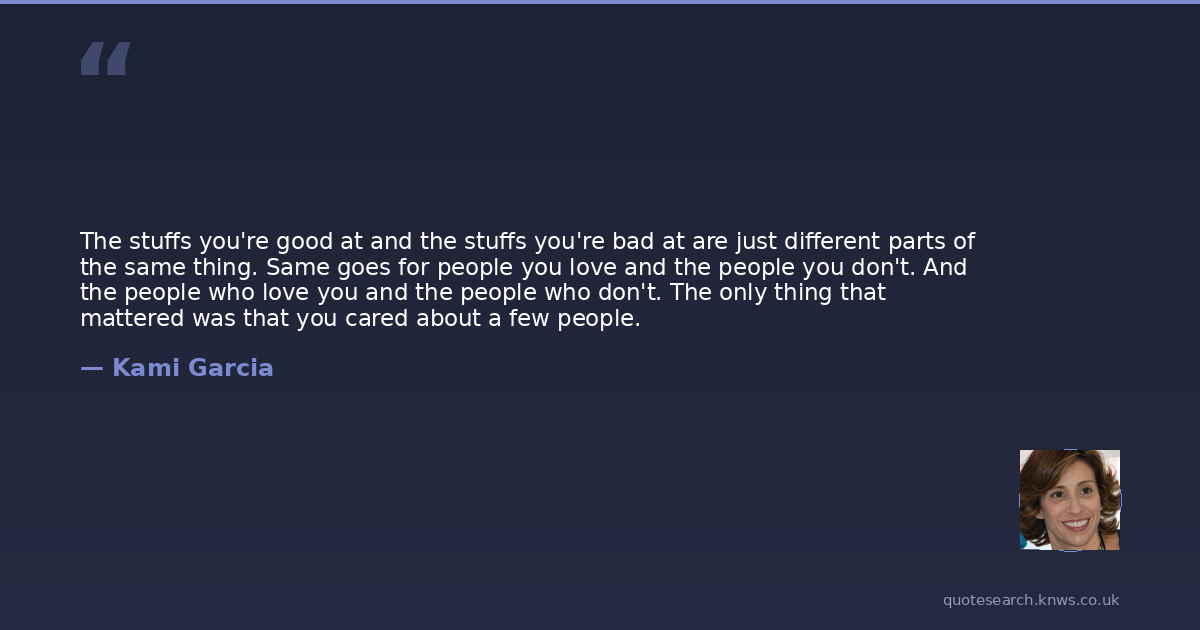The stuffs you're good at and the stuffs you're bad at are just different parts of the same thing. Same goes for people you love and the people you don't. And the people who love you and the people who don't. The only thing that mattered was that you cared about a few people.