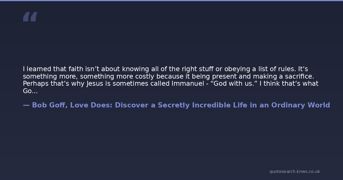 I learned that faith isn’t about knowing all of the right stuff or obeying a list of rules. It’s something more, something more costly because it being present and making a sacrifice. Perhaps that’s why Jesus is sometimes called Immanuel - “God with us.” I think that’s what God had in mind, for Jesus to be present, to just be with us. It’s also what He has in mind for us when it comes to other people.