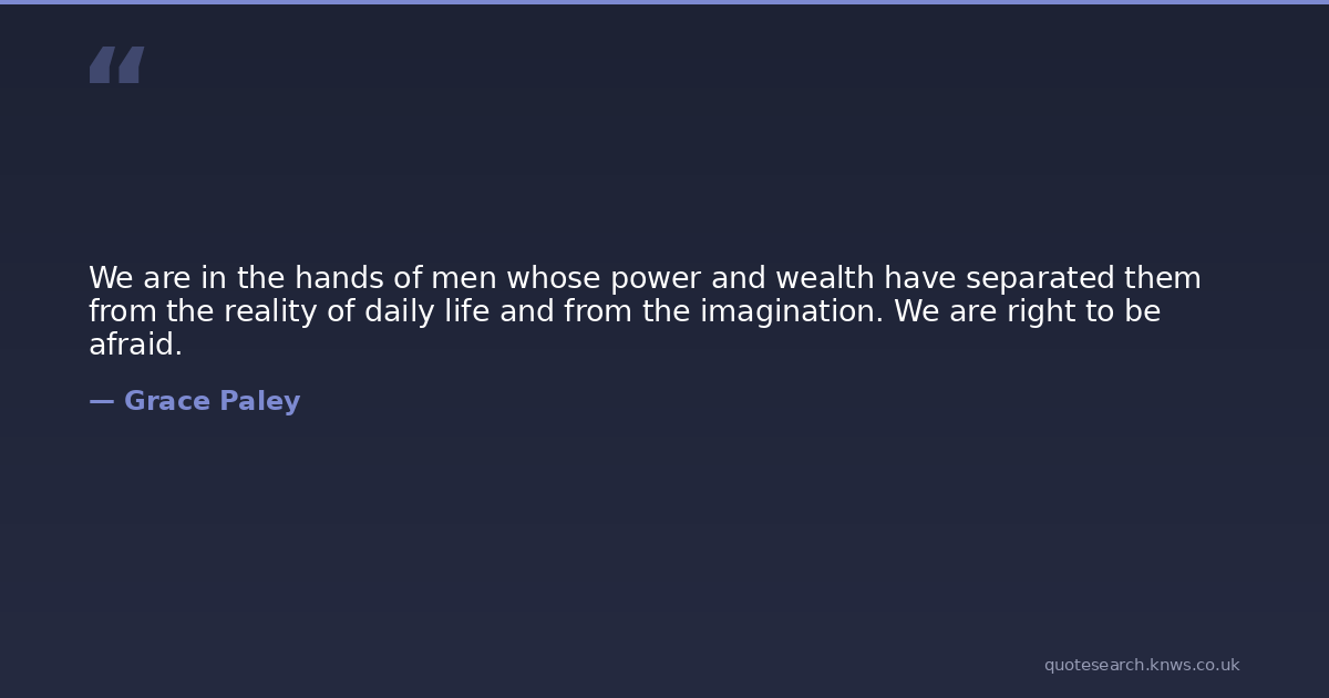 We are in the hands of men whose power and wealth have separated them from the reality of daily life and from the imagination. We are right to be afraid.