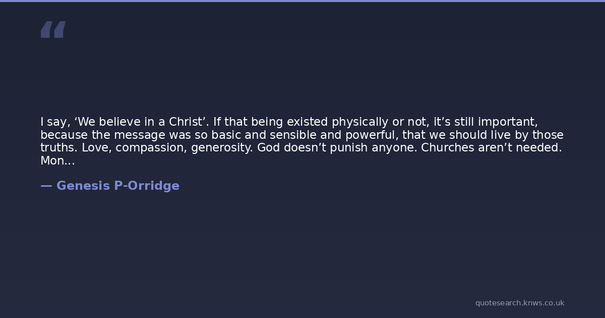 I say, ‘We believe in a Christ’. If that being existed physically or not, it’s still important, because the message was so basic and sensible and powerful, that we should live by those truths. Love, compassion, generosity. God doesn’t punish anyone. Churches aren’t needed. Money in connection to belief is an abomination. They say, ‘Oh…’. Then they quote the Old Testament.