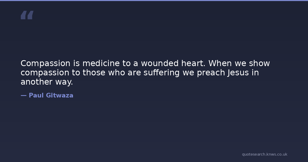 Compassion is medicine to a wounded heart. When we show compassion to those who are suffering we preach Jesus in another way.