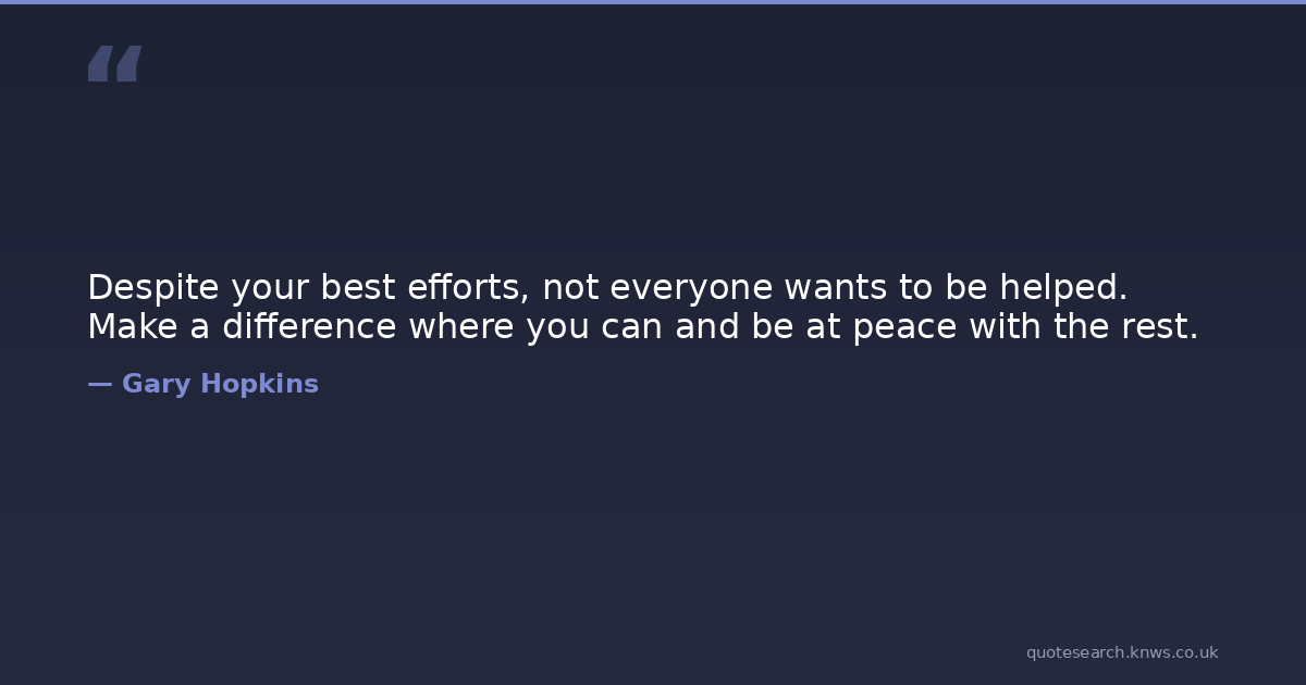 Despite your best efforts, not everyone wants to be helped. Make a difference where you can and be at peace with the rest.