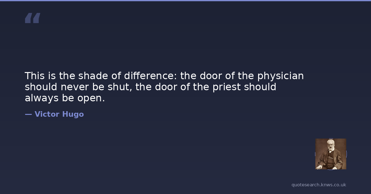 This is the shade of difference: the door of the physician should never be shut, the door of the priest should always be open.