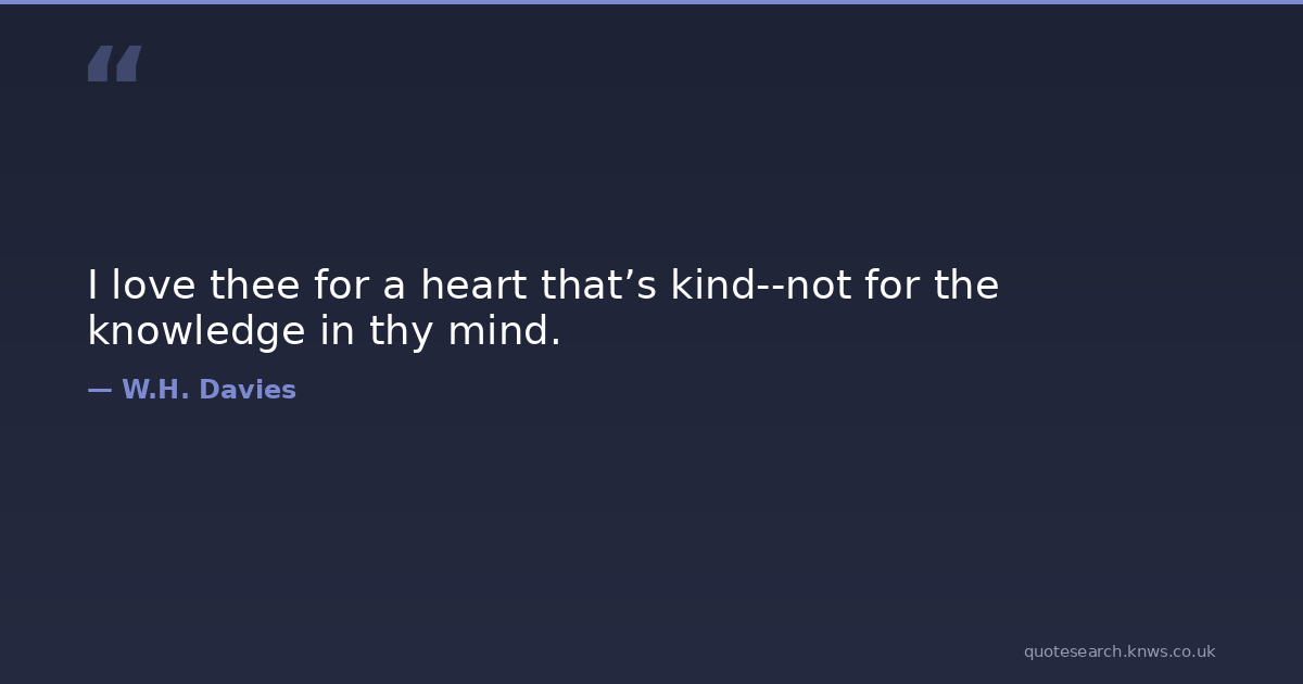 I love thee for a heart that’s kind--not for the knowledge in thy mind. kindness love w-h-davies Download Image Share on X Share on Facebook Copy Link