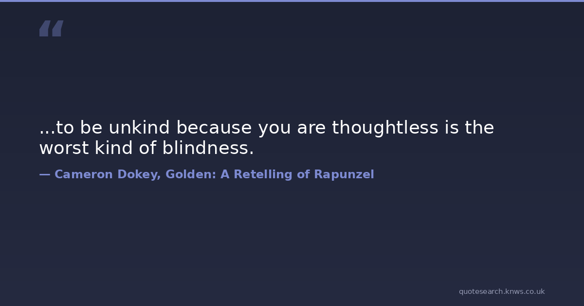 ...to be unkind because you are thoughtless is the worst kind of blindness. kindness Download Image Share on X Share on Facebook Copy Link
