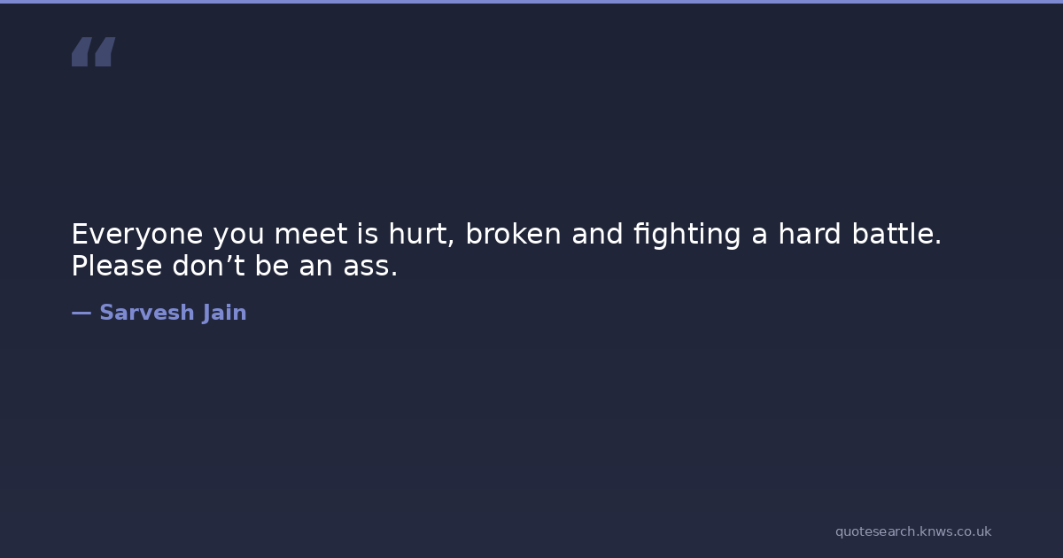 Everyone you meet is hurt, broken and fighting a hard battle. Please don’t be an ass. inspirational-living kindness Download Image Share on X Share on Facebook Copy Link