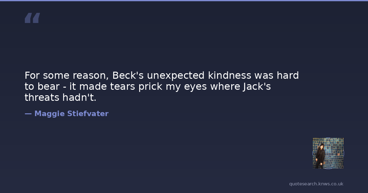For some reason, Beck's unexpected kindness was hard to bear - it made tears prick my eyes where Jack's threats hadn't.