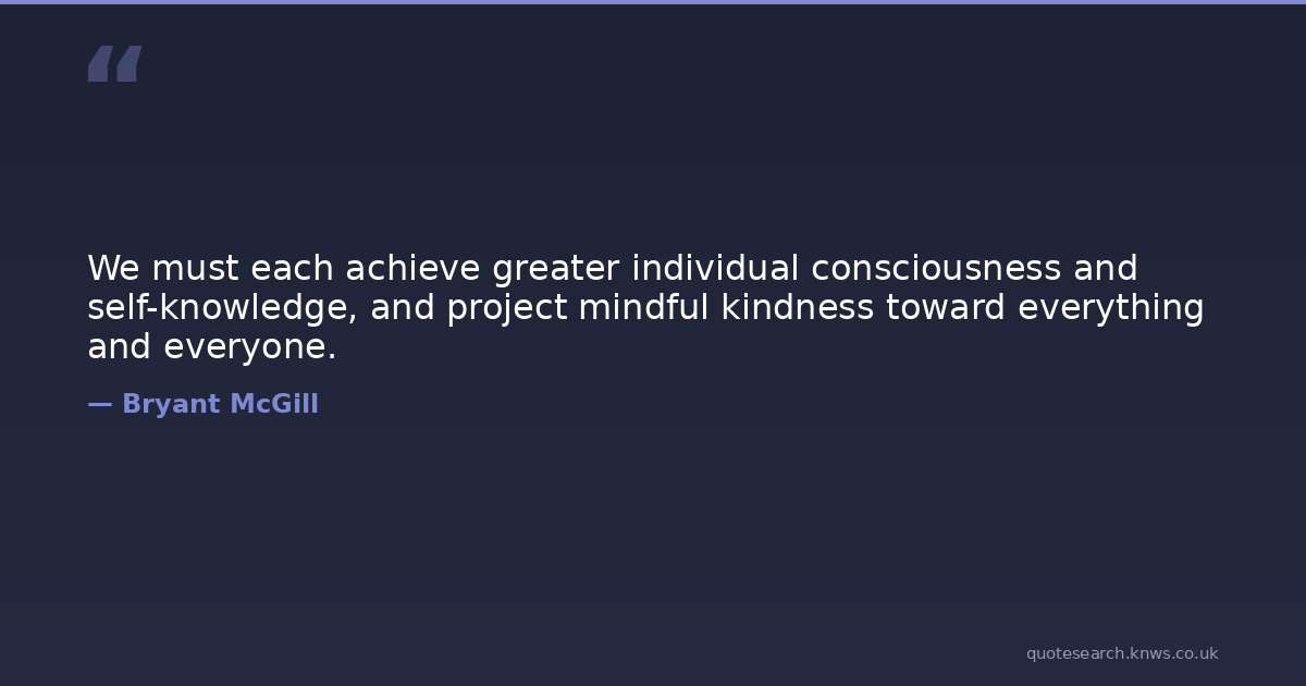 We must each achieve greater individual consciousness and self-knowledge, and project mindful kindness toward everything and everyone.