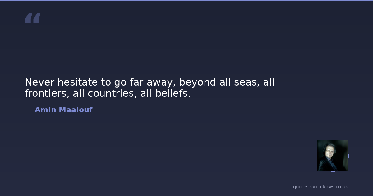 Never hesitate to go far away, beyond all seas, all frontiers, all countries, all beliefs.
